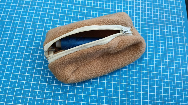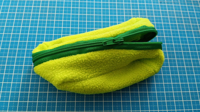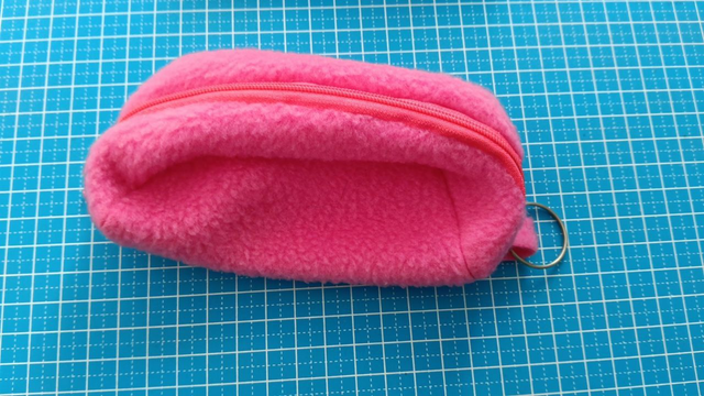 Porte monnaie en polaire avec fermeture à glissière, 14cm de longueur, 8cm de largeur.